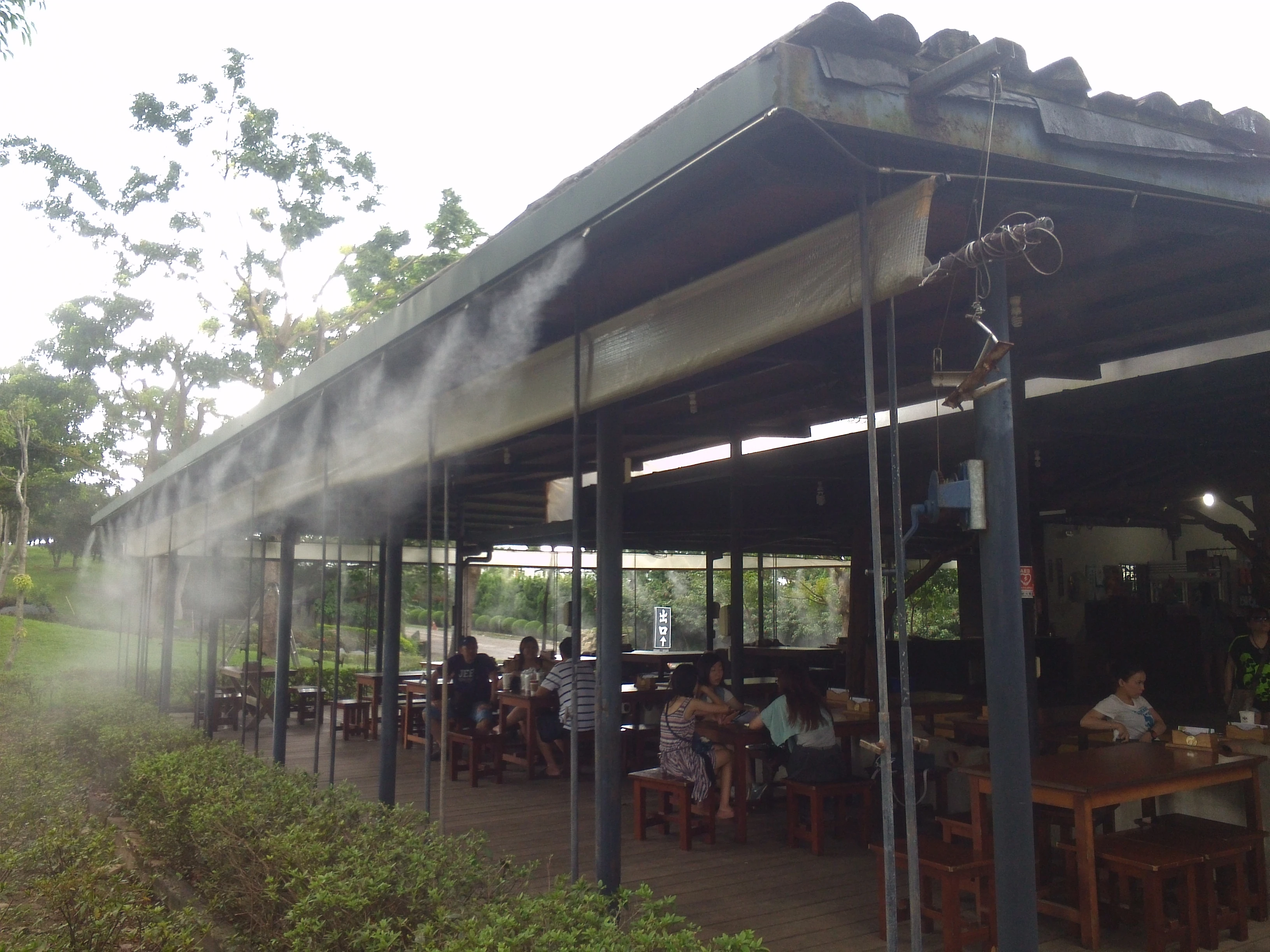 利用噴霧機產生的細微霧粒吸收空氣中的熱氣,可以有效降低周圍環境的溫度3~5度。因為在戶外,冷氣無法到達及工作,在戶外最佳的降溫做法就是噴霧機。